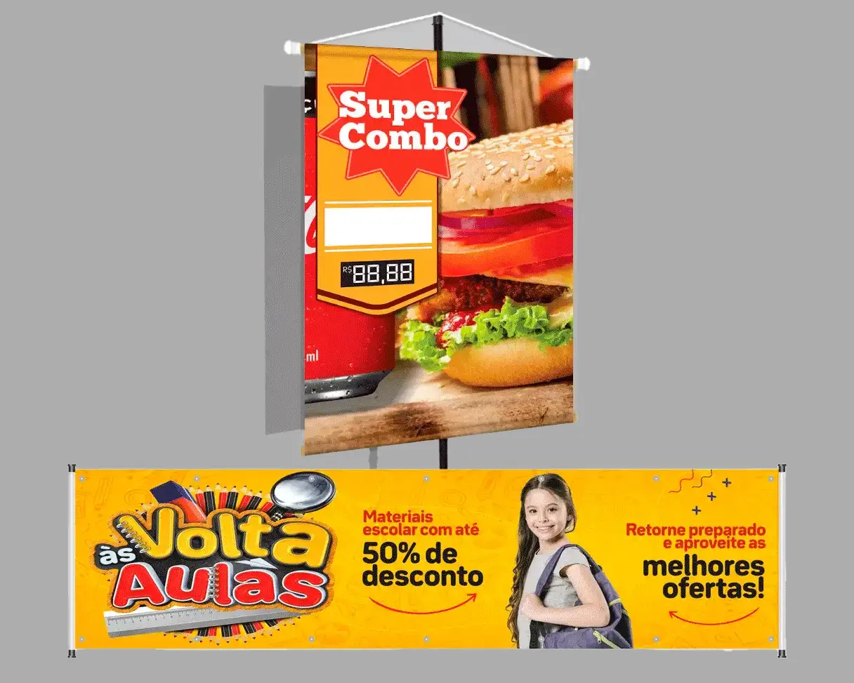 Melhor para: fachadas de estabelecimentos, eventos ao ar livre, campanhas sazonais, promoções em vias de grande movimento e comunicação em obras e construções.